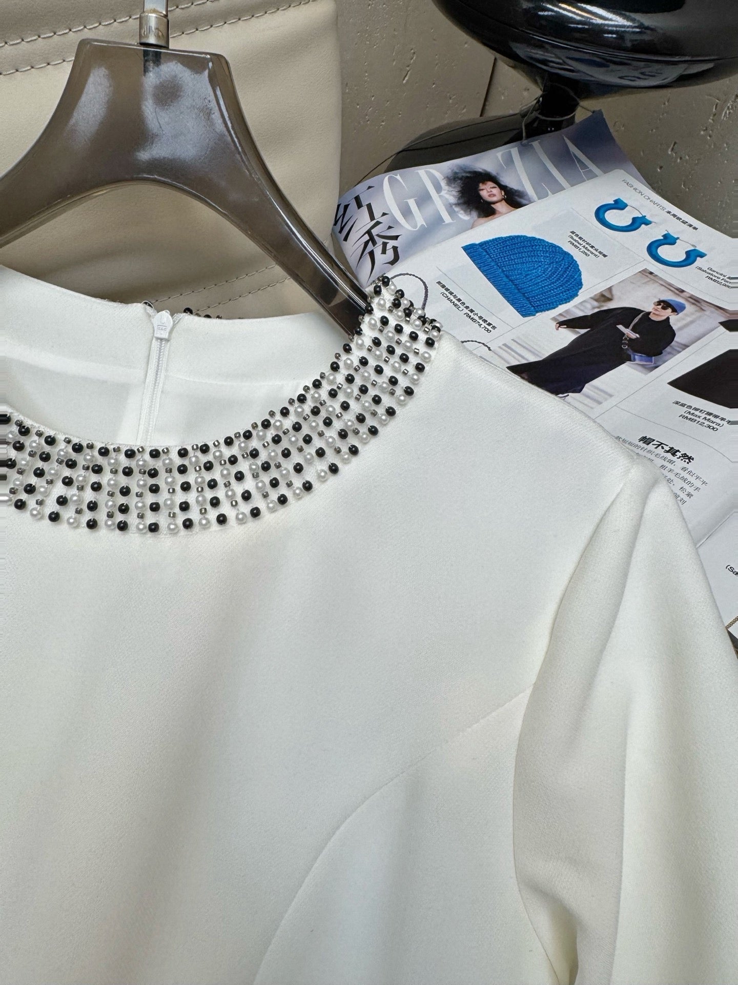 Dior Early Fall New Collection: Heavily Hand-Beaded Round Neck Dress with Elegant Waist Fit. Made from imported custom fabric, this dress is breathable and feels refined. Paired with a custom belt, the texture creates a sculpted, three-dimensional look. The waist-hugging silhouette adds a rich, layered look and styling. Simple yet elegant. Highly recommended.
