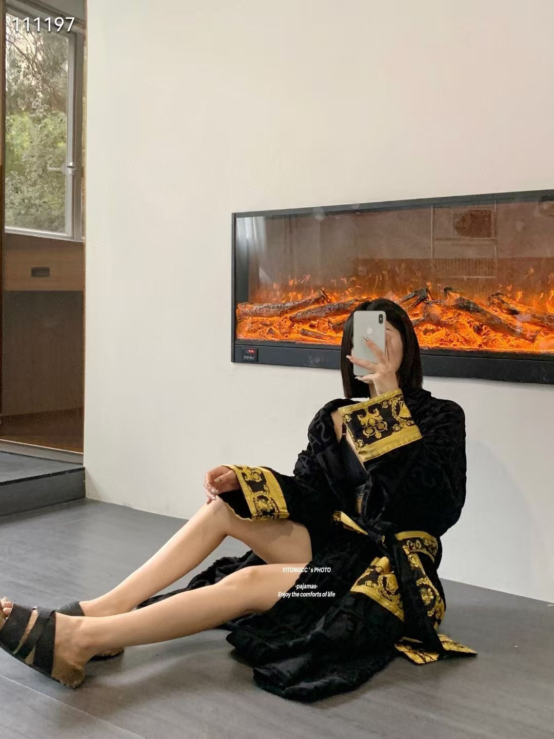 Versace Medusa I BAROQUE color-black bathrobeThis soft, signature cotton bathrobe is detailed with a subtle textured logo print, Barocco print sleeves and a wrap waistband for a luxe feel