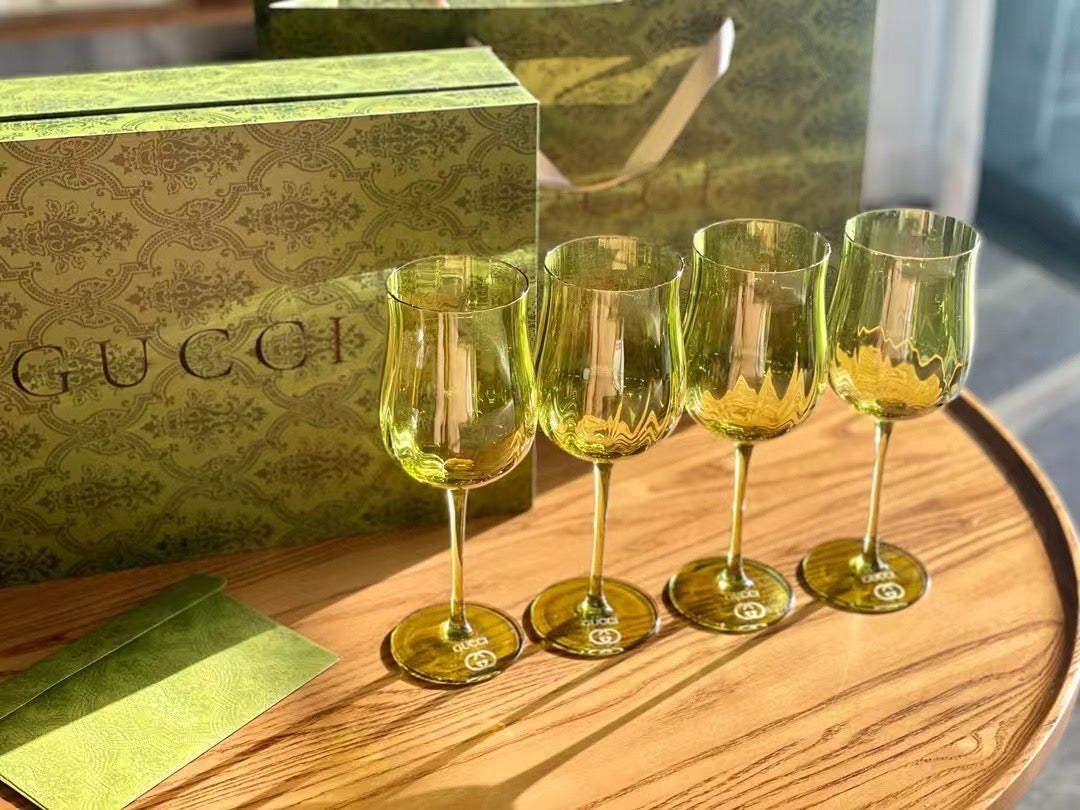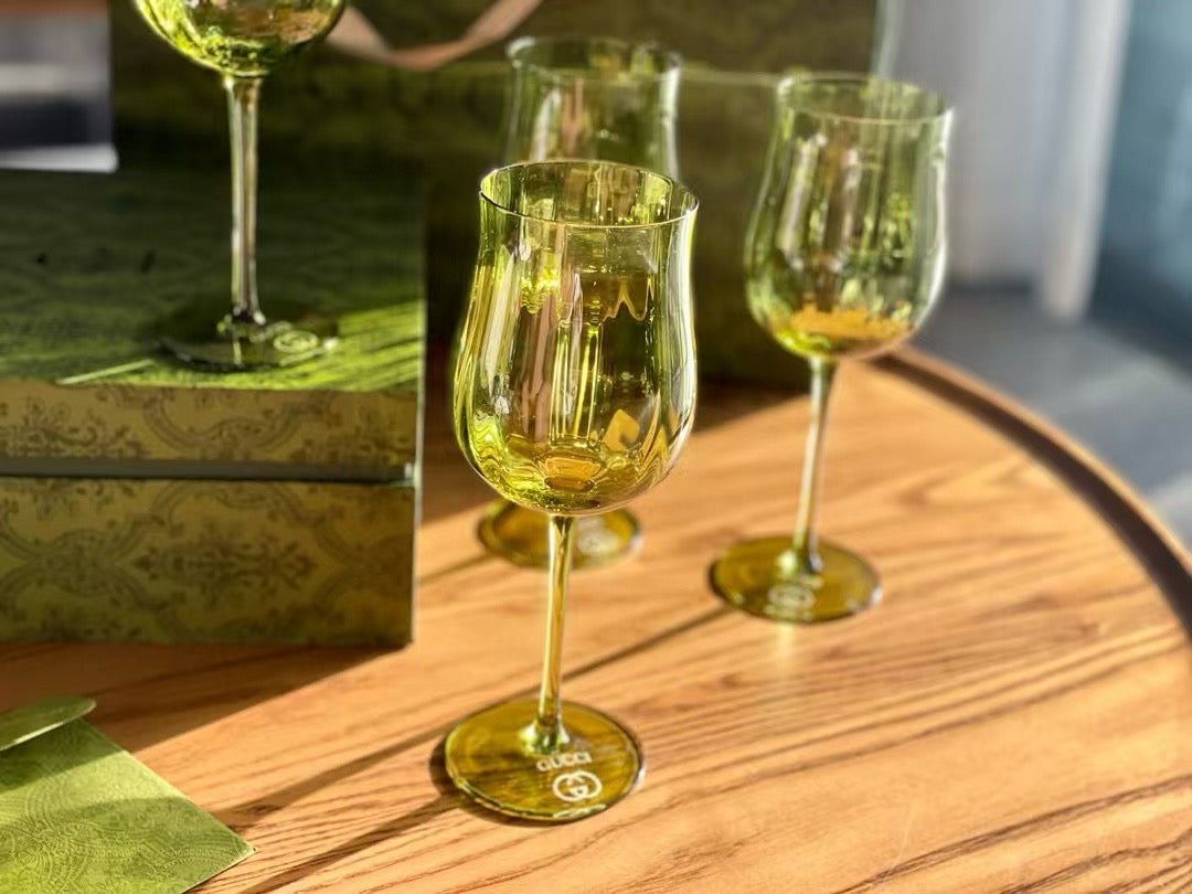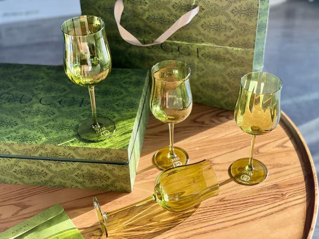 Gucci retro green ripple glass set, export order, no exaggeration, each one is absolutely beautiful. The glasses clash, making a pleasant sound, and the echo is long and long, making every toast more ceremonial. The elegant high-leg design holds up the exquisite cup body, the wide-mouthed cup shape, simple and atmospheric, lead-free glass, healthy and safe. Satisfy the beauty and pragmatism, drinking is more enjoyable, and posing is more photogenic.