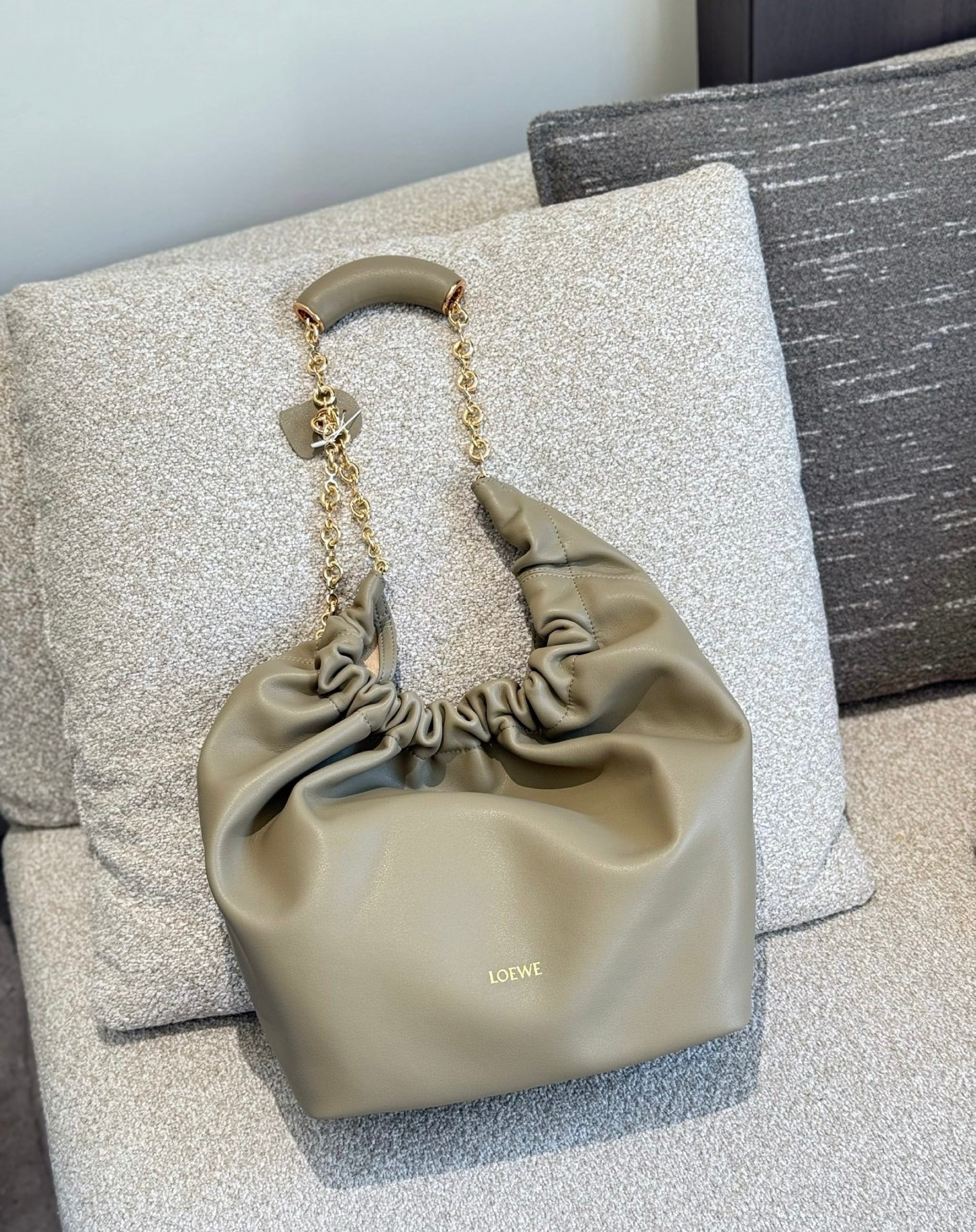 Loewe leather bag , Loewe Squeeze easily complements any style The Pebble pendant adds a touch of flair to the bag.