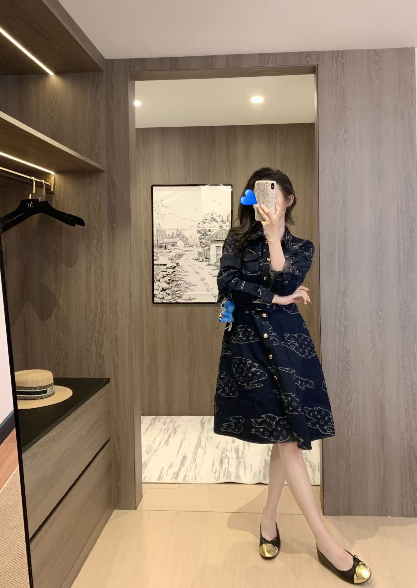 LV* Early Fall Limited Edition Floral Denim Dress 👗 Exclusive ⚠️ Custom-made with original molds. Fully printed with a cloud-like pattern, creating an elegant look. The sophisticated color scheme is stylish and elegant. ~